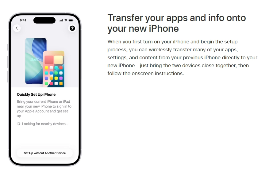 - Setup & Basics: Apple ID sign-in, data transfer from old iPhones, Wi-Fi connection, calls, and App Store navigation.